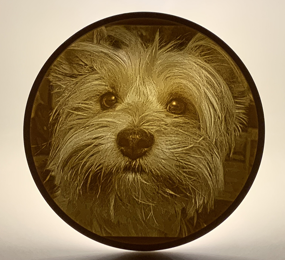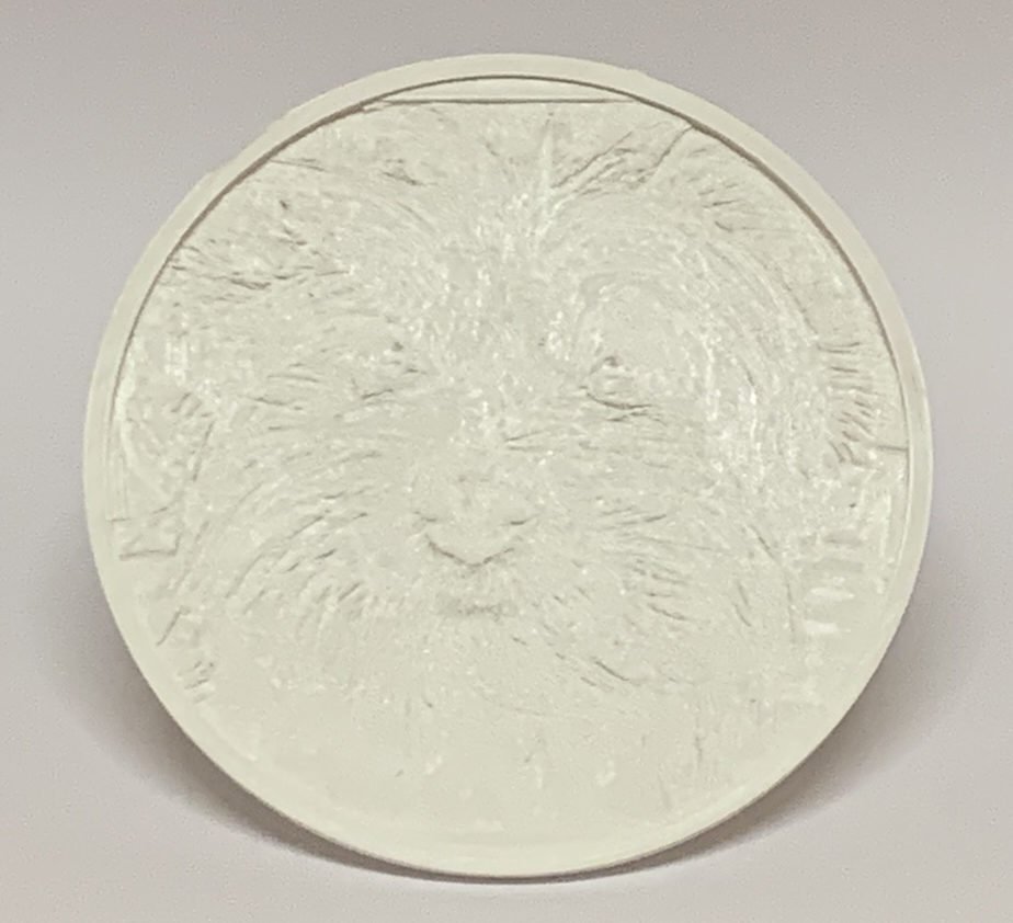 Ez a tárgy egy 3D nyomtatóval készült különleges kép. A kép normál esetben nem látszik, csak akkor elevenedik meg amikor hátulról megvilágítjuk valamilyen fényforrással.